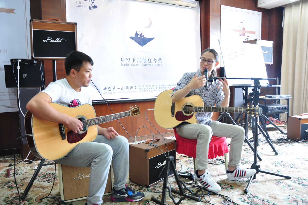 想要弹好吉他首先必须了解吉他,夏令营中的吉他工艺课就恰好能填补学员们在这方面的认知盲区。法丽达吉他的产品专员陈浩从木材种类、吉他涂装到制作工艺,全方位讲解了一把吉他诞生背后的故事,还介绍了不少保养修护吉他的小常识。现场气氛轻松活跃,相信这样的特别课程能让学员今后的吉他之路更为顺畅。
