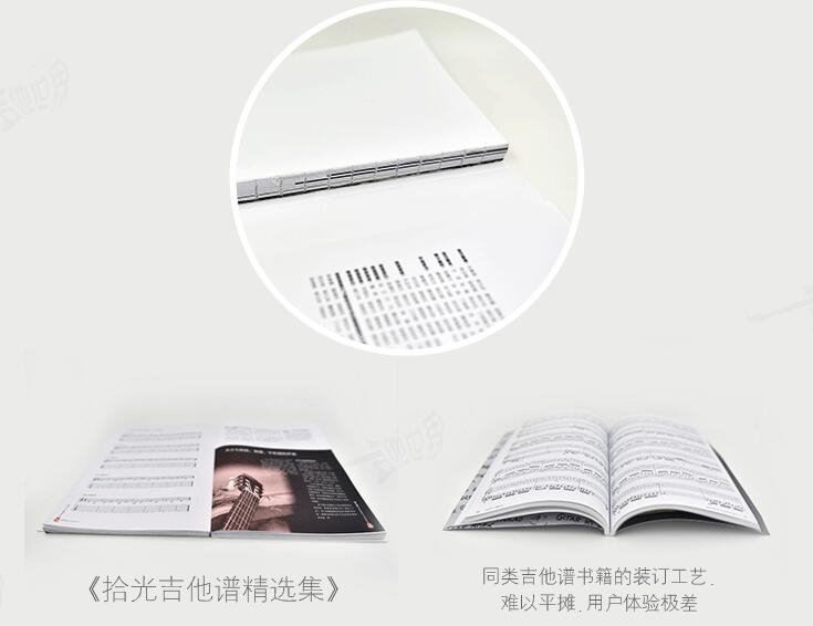 从装帧版式上看,A4大小的大开本使曲谱大部分容纳于2-3页的版面之中,免去弹奏过程中的频繁翻页所带来的不便;裸背线装则意味着翻到书的任何一页都能自然的平摊,让这本书拥有了最佳的使用体验。