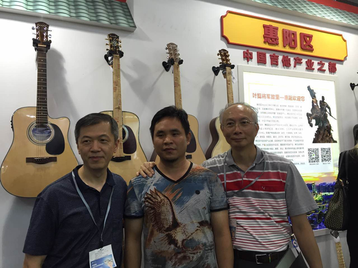 从左至右:全丰公司总经理蔡赖丰先生、惠阳区吉他行业协会发起人阎老师、全丰公司副总经理冯建平先生。