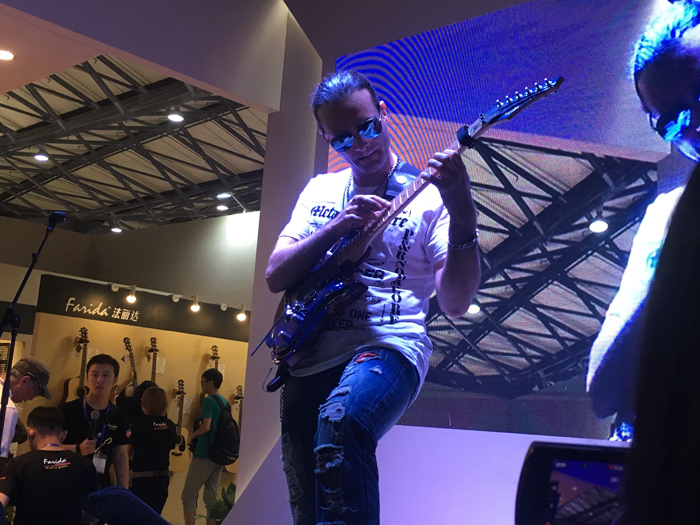 精品吉他展示、吉他镶嵌艺术解密等活动让法丽达展台人潮涌动,吸引来的不仅是普通观众,来访者中更不乏“大师级”嘉宾——