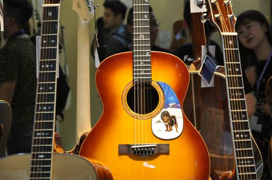 步入W4馆,奶咖色的法丽达展台便映入眼帘,从绿意盎然的“江南绿”到浓情似水的“远行”,彩绘吉他用它斑斓的色彩引来观众问询不断;加拿大手工吉他Boucher与法丽达初次合作,手工吉他刚一展出便被懂行之人视为珍宝;由世界前三的镶嵌大师HarveyLeach亲手制作的狗年纪念款吉他,其炉火纯青的镶嵌艺术则是吉他美学领域的巅峰之作。
