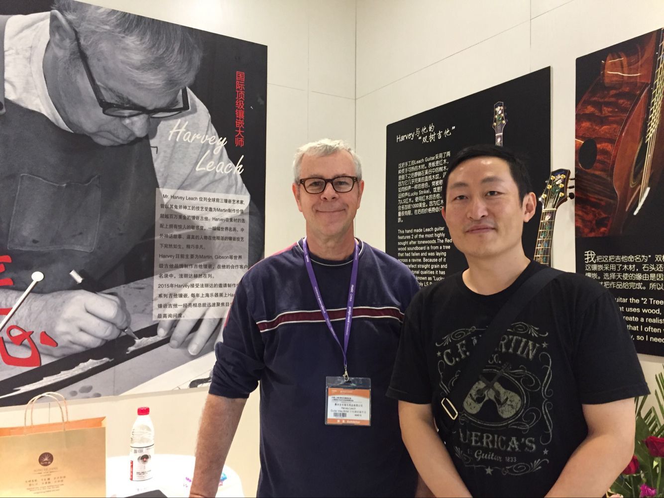 赛平老师来到法丽达展台,与Harvey大师合影留念,当大师遇到大师,就吉他镶嵌话题相谈甚欢。