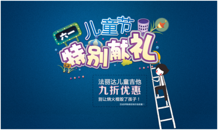 【法丽达在线讯】作为家长,都想送给小朋友最好的礼物,都想让他们能赢在起点。六一将至,法丽达儿童吉他被咨询很多,看来很多家长已经在行动。从5月15日开始,法丽达家族三大品牌儿童吉他一律9折优惠,此活动将以超低价帮助众多家长轻松选入合适的吉他作为儿童节的礼物,希望法丽达优秀的品质能启蒙小朋友的吉他梦。